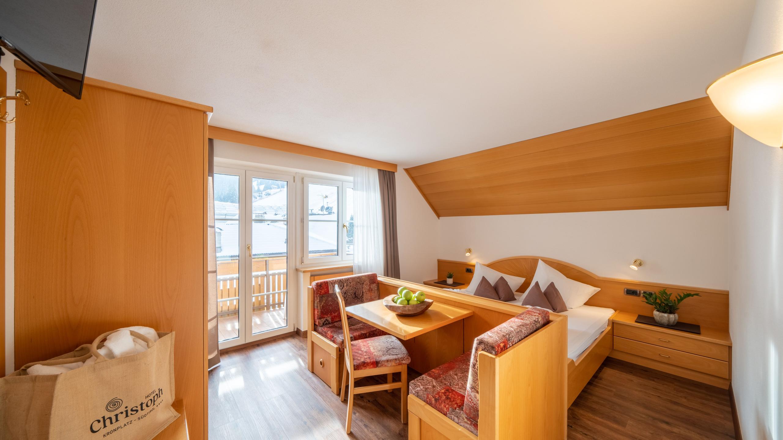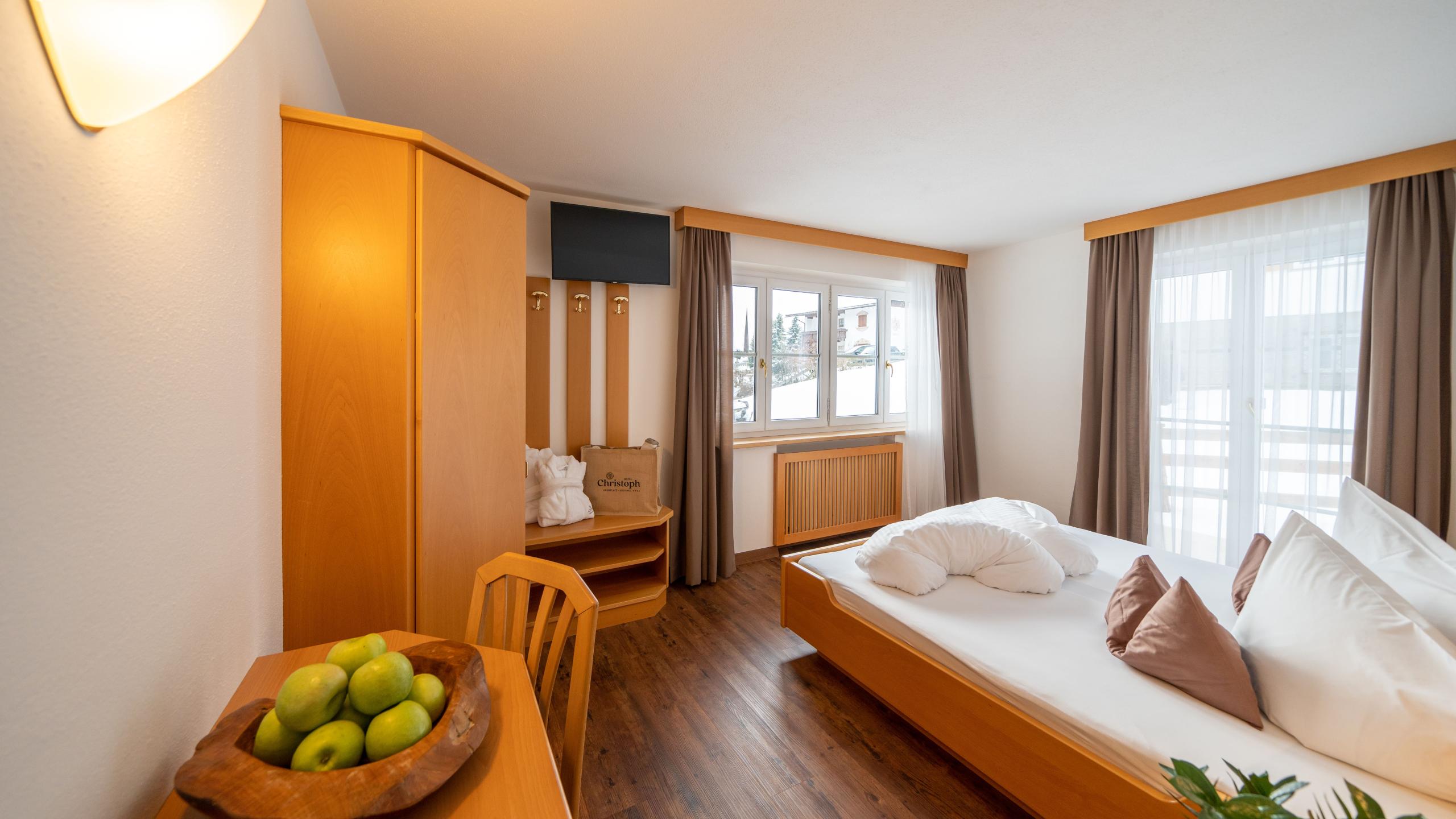 Die Doppelzimmer im Hotellino schonen Ihr Portemonnaie und versprechen trotzdem maximale Erholung dank ihrer urgemütlichen Einrichtung und vollen Ausstattung. Ein kurzer Spaziergang (ca. 50 Meter) trennt das Hotellino vom Hotel Christoph.