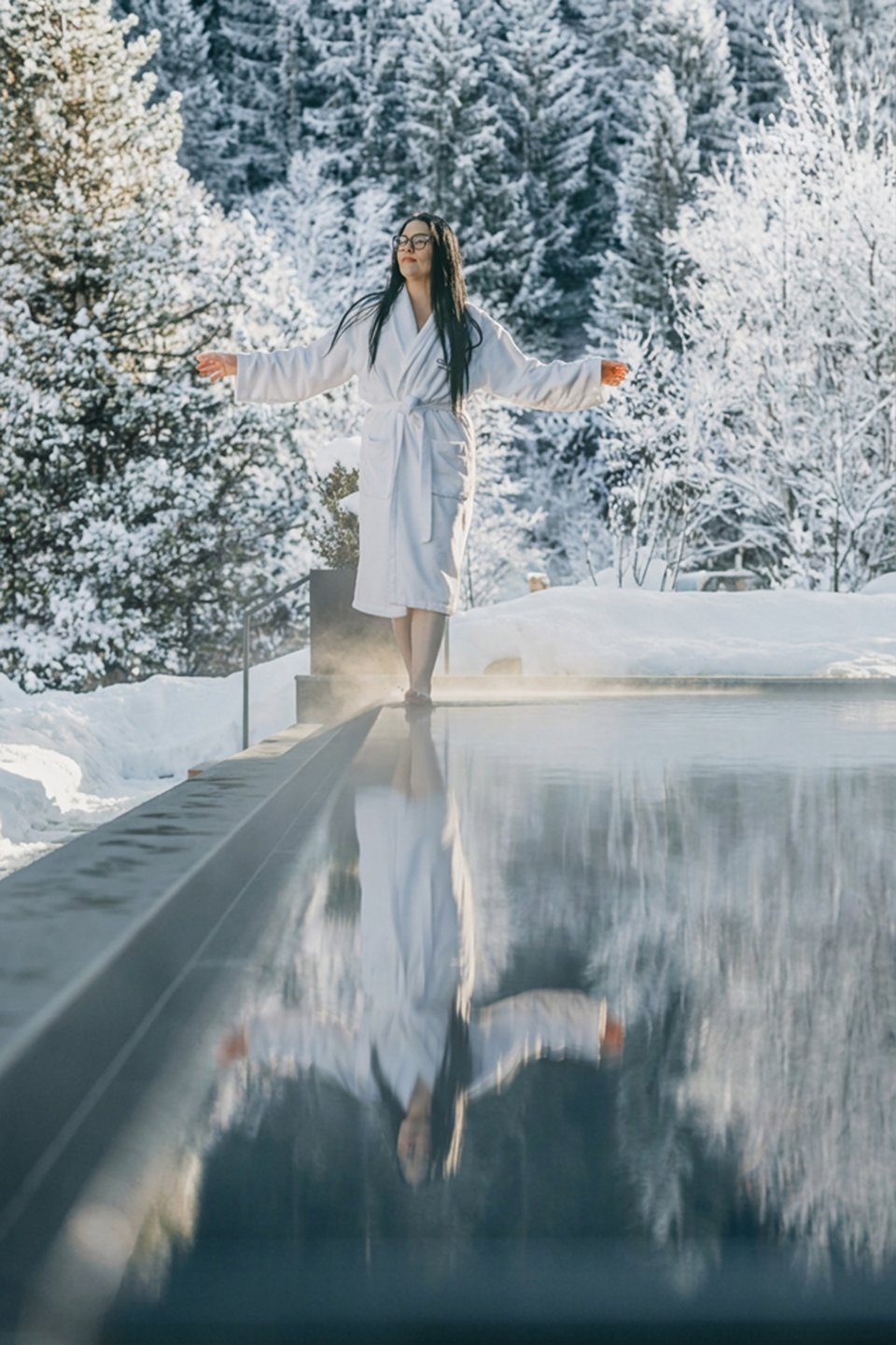 Immergetevi all’aria aperta: la nostra nuova piscina riscaldata, aperta tutto l’anno, combina l’aria fresca di montagna con un piacevole calore. Perfetta per nuotare all’esterno – anche nelle giornate più fresche.