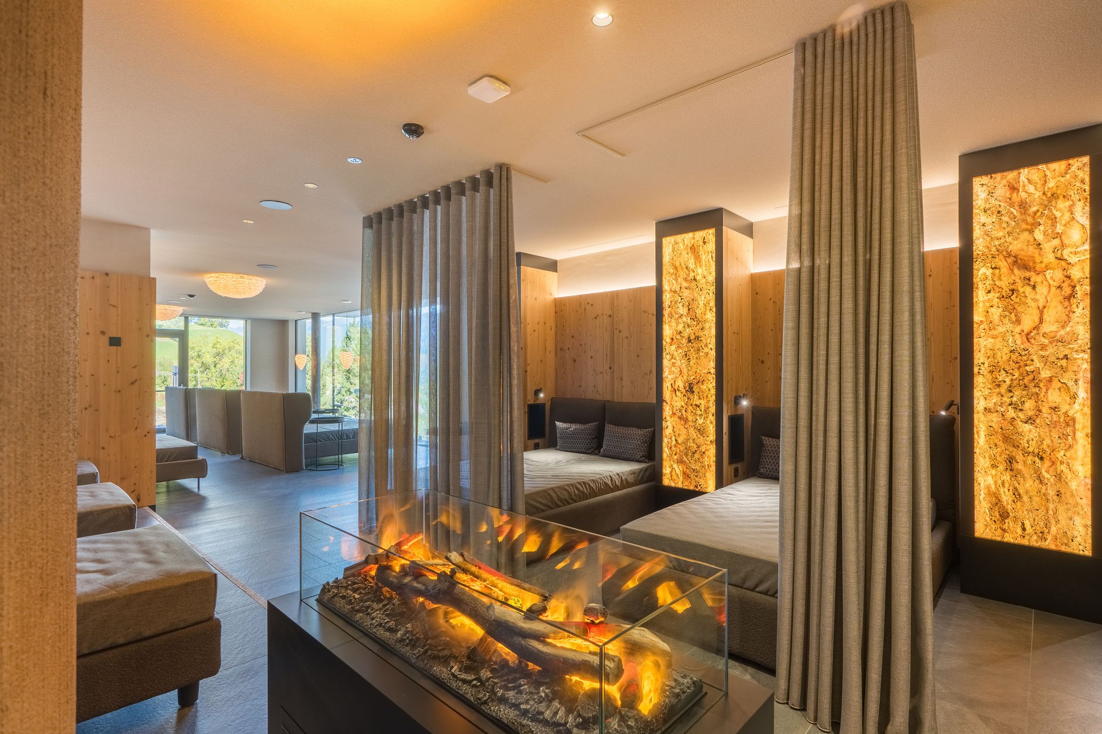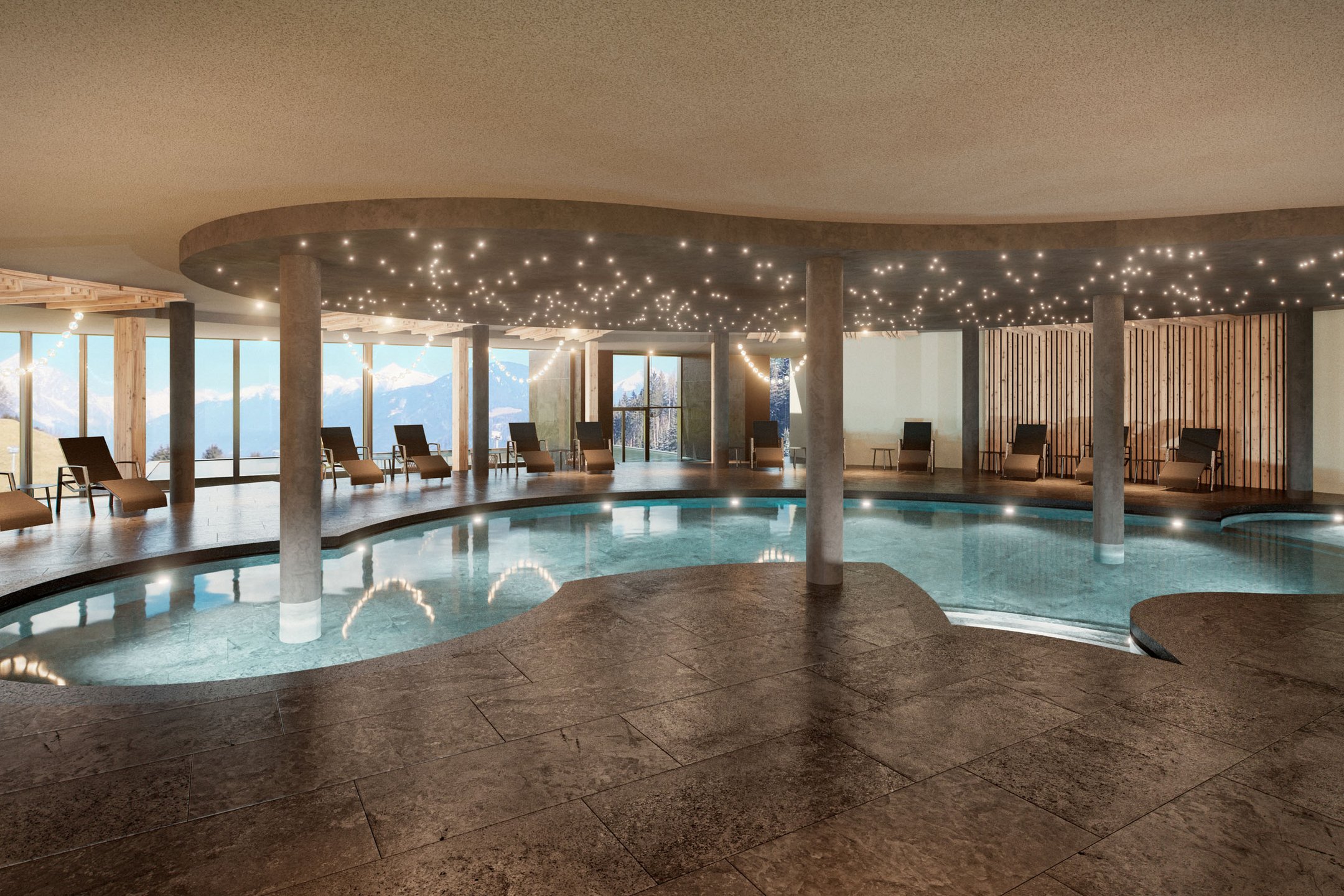 Ancora più momenti di benessere, con una nuova sala relax panoramica con vista sulle montagne. - Nuova area piscine con piscina inerna, esterna e idromassaggio